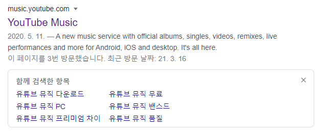 1. 구글에 '유튜브 뮤직' 검색 후 하단 이미지와 같은 링크 클릭